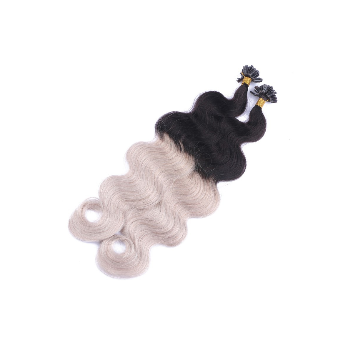 25 Keratin Bonding Hair Extensions - 1b/Sky Blue Ombre - GEWELLT 100% Echthaar 1g Strähne - NOVON EXTENTIONS